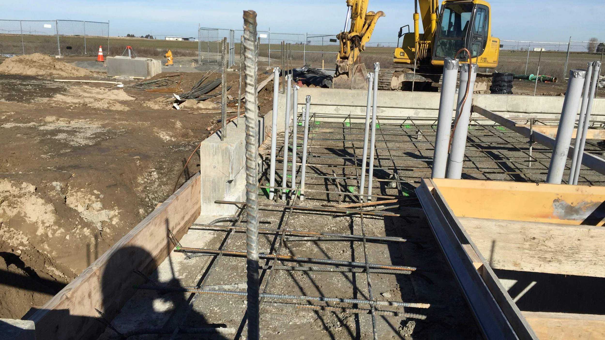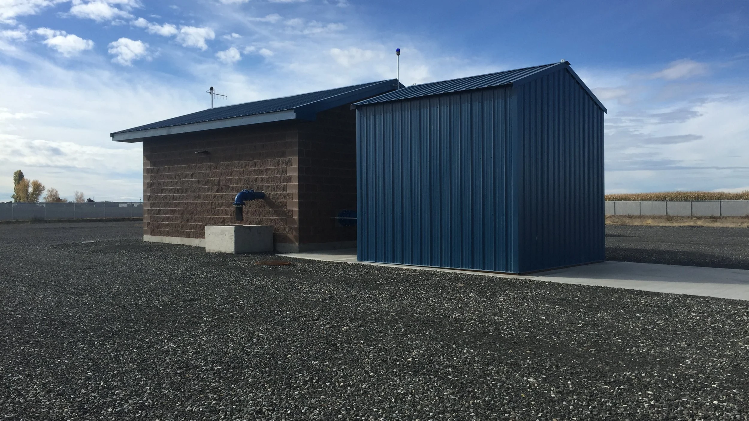 The new 16-inch diameter well was drilled to approximately 900 feet in the Wanapum basalt aquifer. The well provides 1,500 gpm and is equipped with a VFD to allow variable pumping rates. One-and-a-half miles of 16-inch transmission main was laid from the well site and connected to the City's water distribution system. A CMU block piping house and a removable metal building was constructed over the wellhead and pump. The removable building allows direct access to the wellhead for pulling the pump for maintenance, rehabilitation or modification of the well. The site includes a discharge pond for the deep well pump control valve, and was also prepared for the future construction of a reservoir.